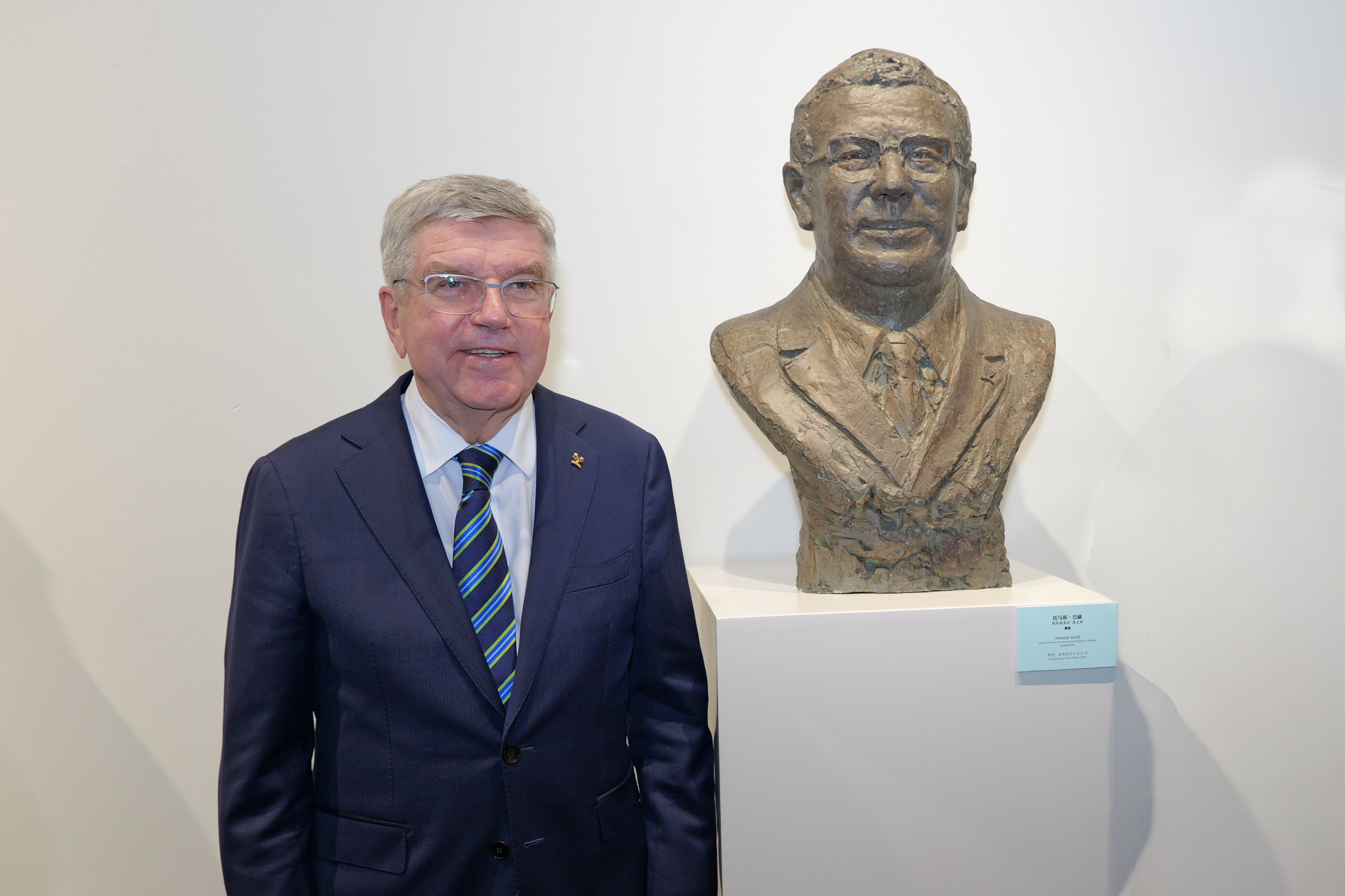 在参观过程中,巴赫重点关注了袁熙坤作品中体育精神与艺术之美的深度交融,直言这些作品以生动艺术手法展现了运动员的拼搏风貌,完美传递了奥林匹克 “更快、更高、更强 —— 更团结” 的核心价值观。他特别提到,“艺术与体育作为跨越国界的世界性语言,相辅相成且极具感染力,能持续激励全球民众追求卓越,为全球体育文化发展注入动力。”期间,巴赫还在袁熙坤为顾拜旦、萨马兰奇及他本人创作的系列雕塑前细细驻足,并与自己的肖像雕塑合影,成就了一段“巴赫遇见巴赫”的佳话。