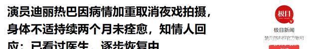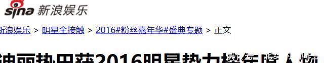 部分参考资料: 新浪娱乐|迪丽热巴获2016明星势力榜年度人物. 极目新闻|演员迪丽热巴因病情加重取消夜戏拍摄,身体不适持续两个月未痊愈,知情人回应:已看过医生,逐步恢复中