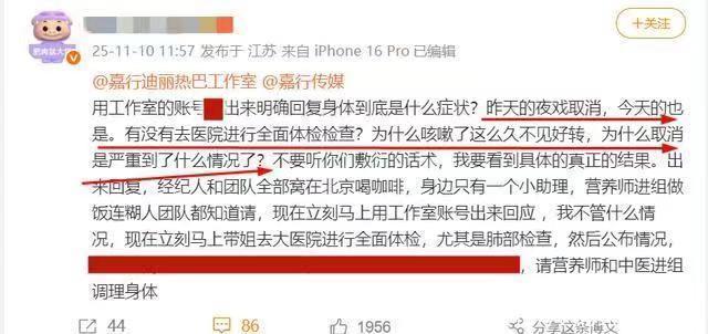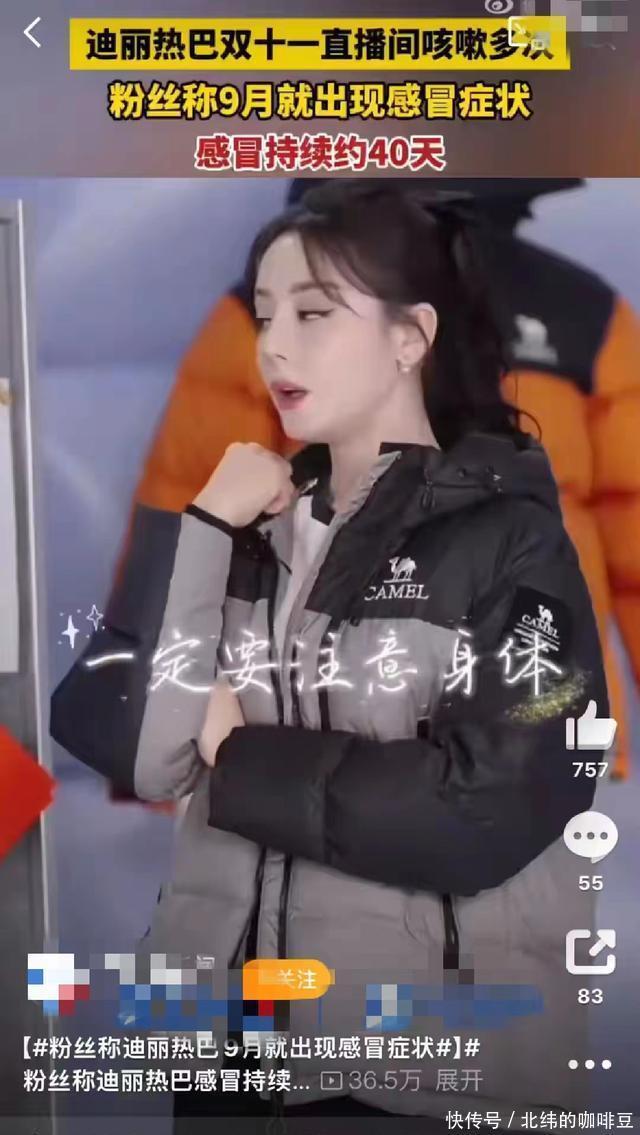 顶流的代价 镜头前,迪丽热巴是妆容精致、笑容明媚的顶流女星; 镜头后,持续40天的咳嗽却让她连说话都要反复清嗓。 这场横跨秋冬的感冒,恰似一把利刃,撕开了顶流光环下被掩盖的健康困境。