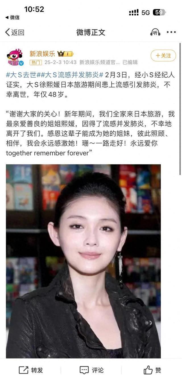 此前,艺人徐熙媛(大S)便因对流感症状重视不足,最终延误治疗发展为肺炎。 据其身边工作人员透露,起初她仅将身体不适判定为普通感冒。 为保障工作进度未及时停工休养,直至出现高热、全身乏力等症状才前往医院就诊。