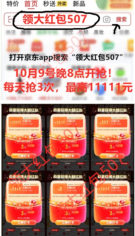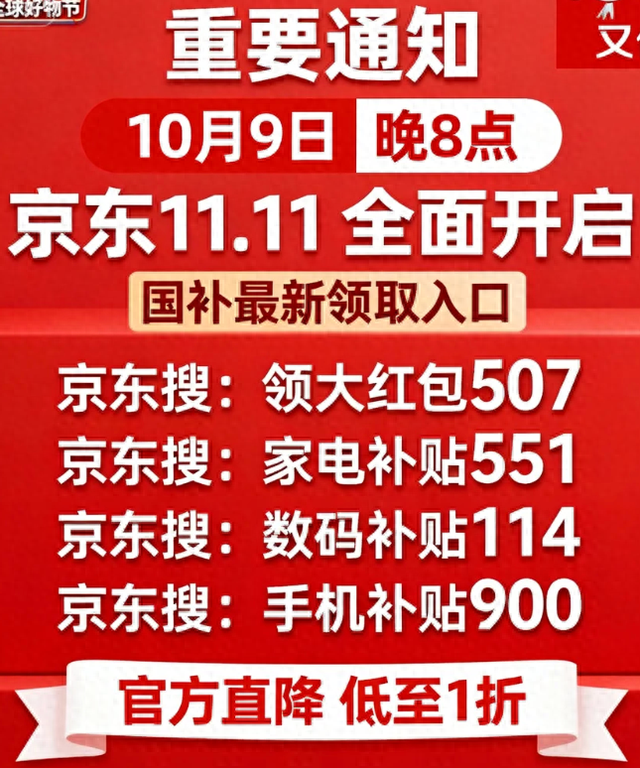 手机京东搜索:「领大红包507」,10月9日起,调好闹钟,每天领3次最高11111元的双11红包!记得保存收藏。